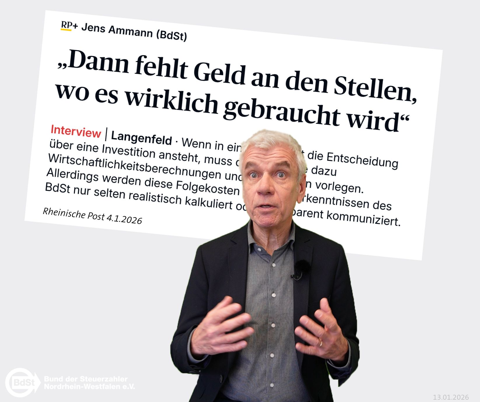 In einem Interview mit Dorothee Schmidt-Elmendorff von der Rheinischen Post fordert BdSt-Experte Jens Ammann, dass Kommunen bei Investitionen an Folgekosten denken sollten.