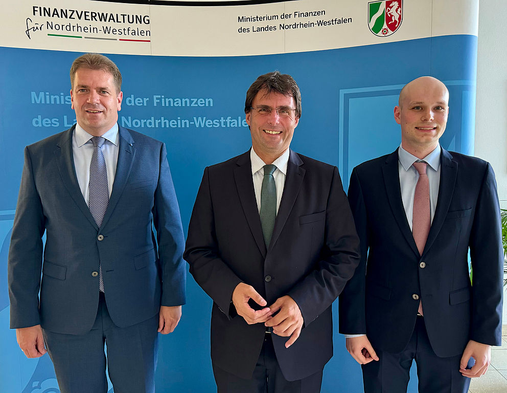 Rik Steinheuer legte dem Finanzminister dar, wie ein Abbau der zahlreichen Förderprogramme zu einer besseren Finanzausstattung der Kommunen führen könnte. Darüber hinaus wurde über den weiteren Aufbau und die Arbeit des Landesamtes zur Bekämpfung der Finanzkriminalität Nordrhein-Westfalen gesprochen. Zum Abschluss des Gespräches versicherten sich die Gesprächspartner den konstruktiven Austausch weiter fortzuführen.