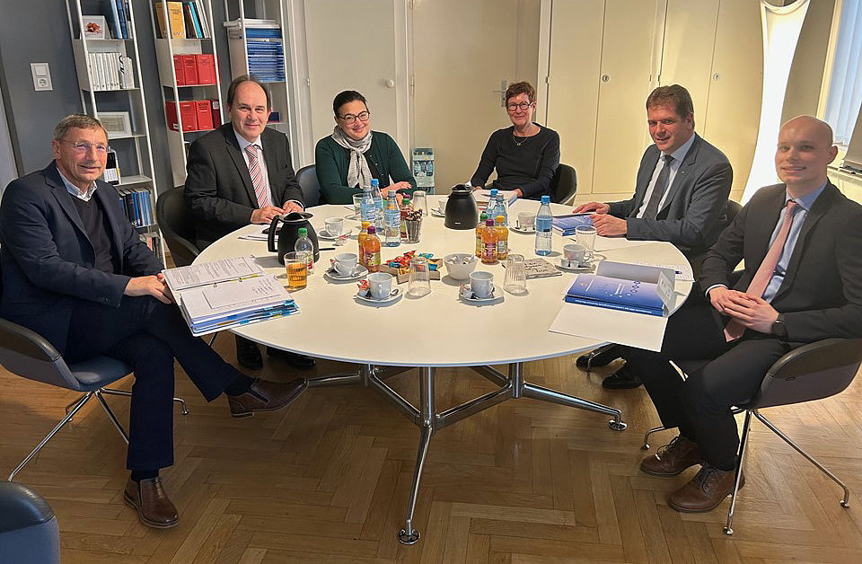 Gemeinsam mit Vizepräsidenten Michael Kisseler und dem für die allgemeine Haushalts- und Finanzwirtschaft zuständigen Mitglied, Leitende Ministerialrätin Sonja Gärtner, tauschten sich die Anwesenden zu aktuellen haushaltspolitischen Themen aus.